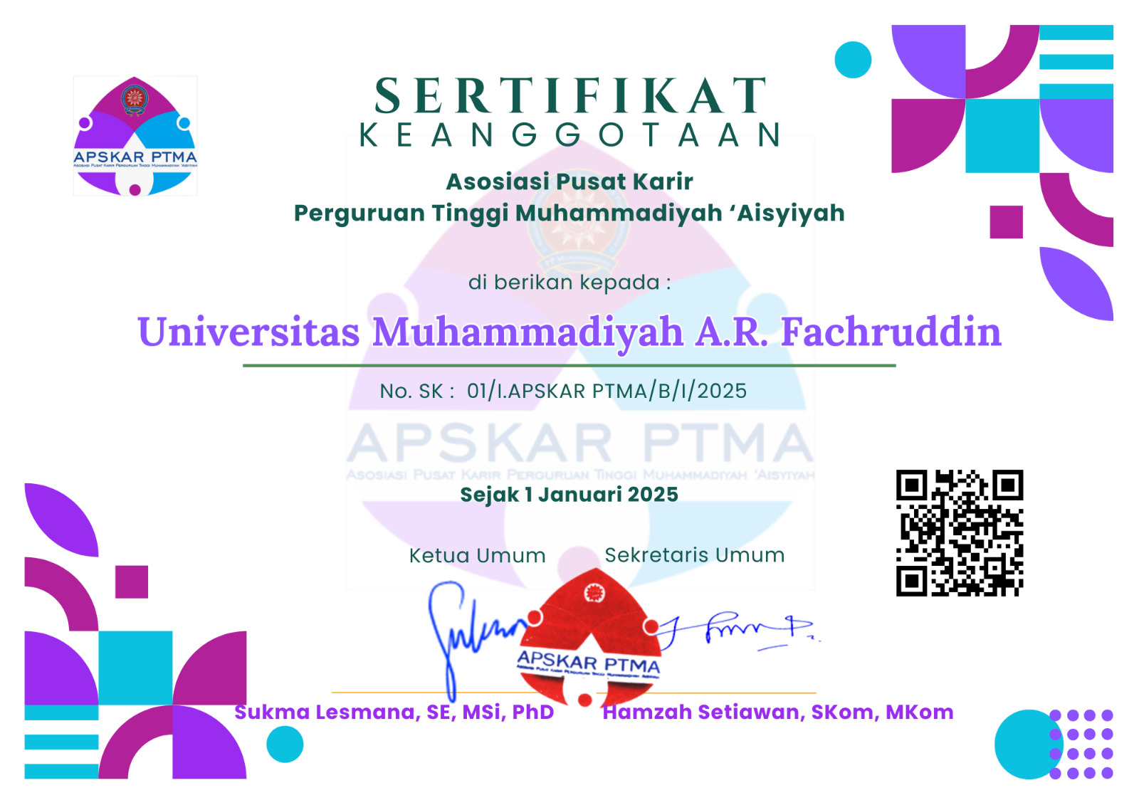 Sertifikat penghargaan Bagian Pusat Karir UNIMAR